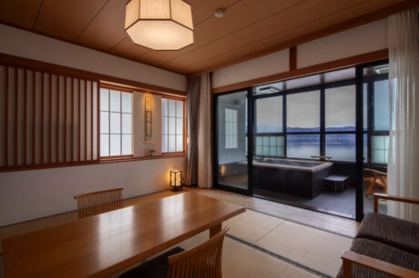 「寛ぎの諏訪の湯宿 萃sui-諏訪湖」は、諏訪湖畔に立つ小規模な温泉宿。