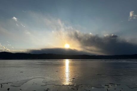 諏訪湖のほとりにたたずむ