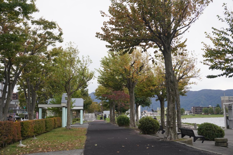 晴れた日に紅葉散策をしながら約16キロの諏訪湖1周のウォーキングやジョギング、サイクリングも爽快でリフレッシュできますよ。