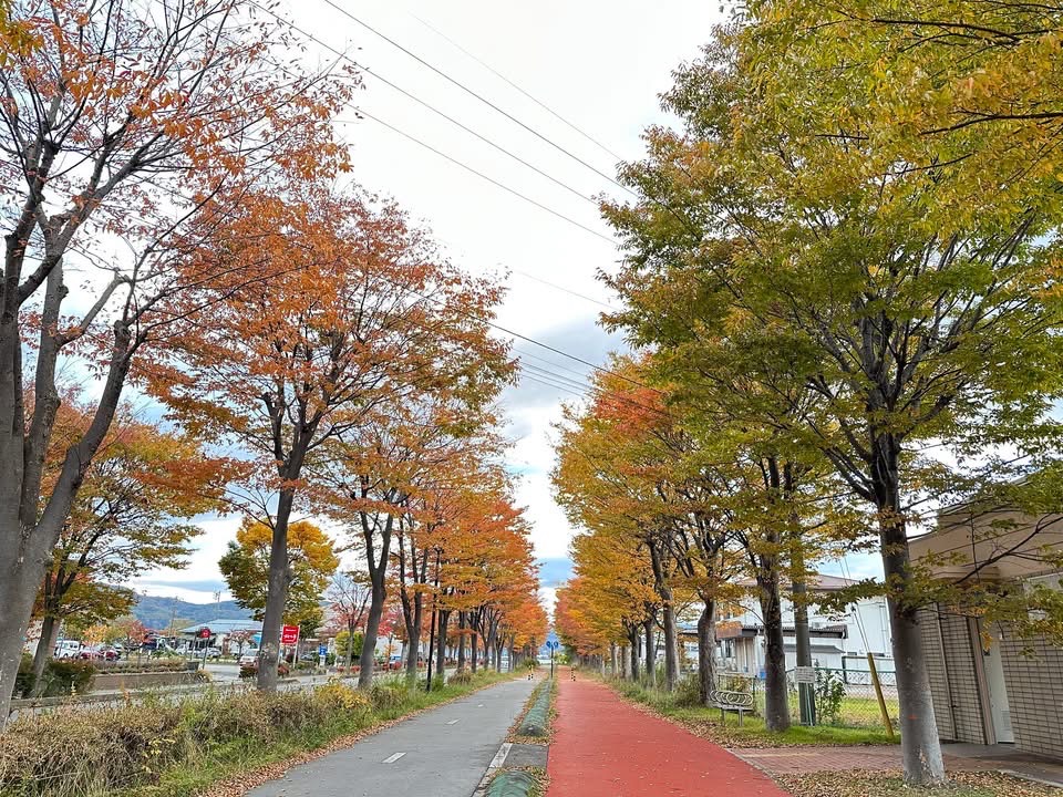 原田泰治美術館横並木:見ごろ~一部散り始め