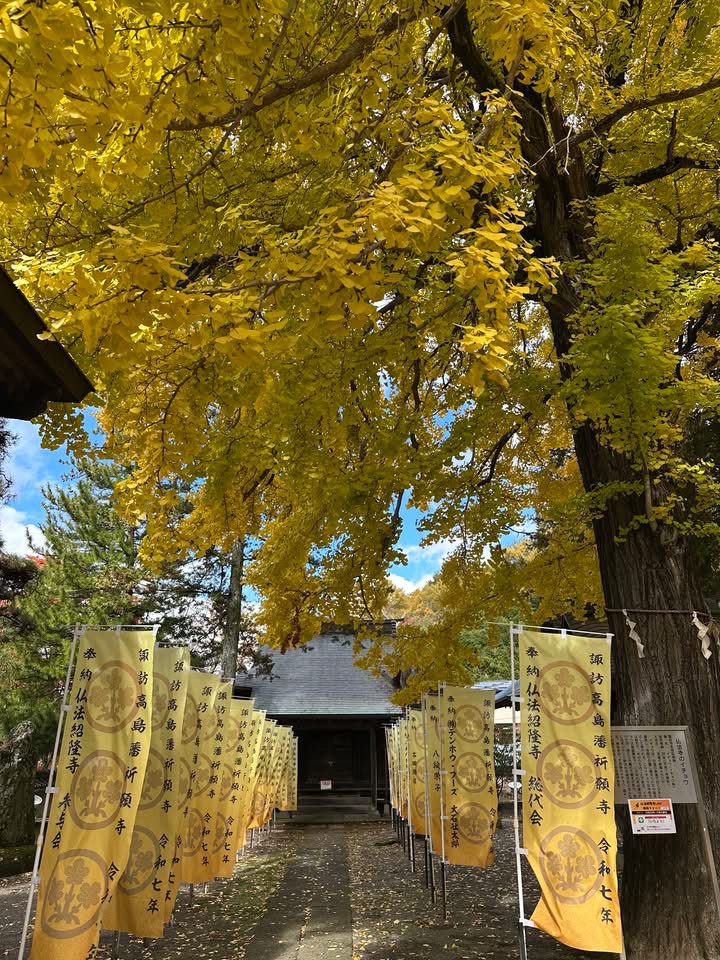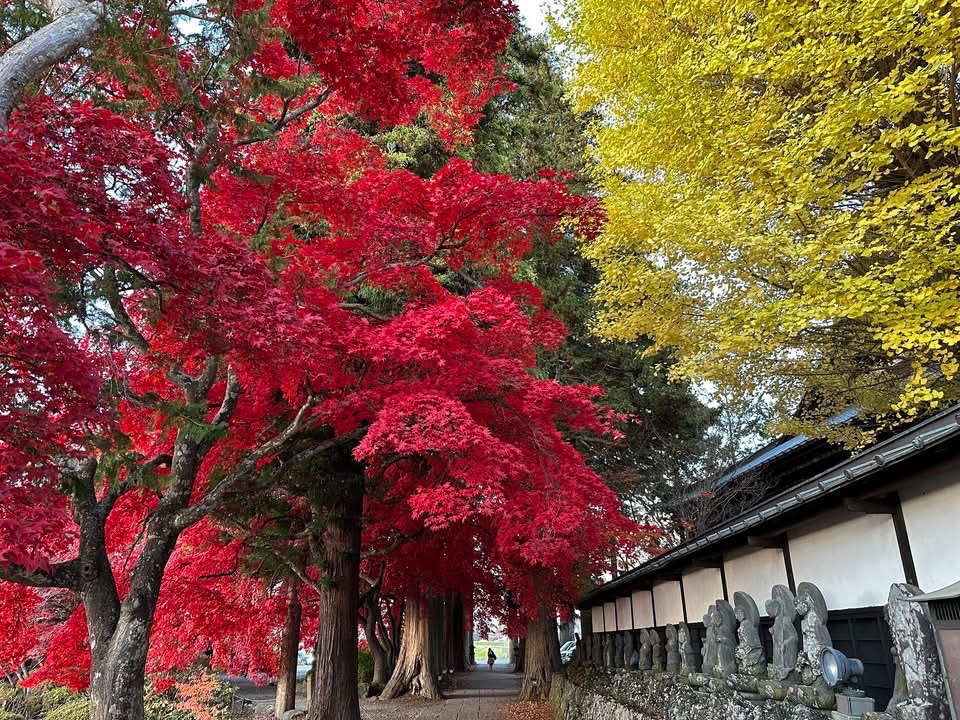 佛法紹隆寺の夫婦大銀杏、温泉寺の色鮮やかな庭園、長圓寺の真紅のカエデ。