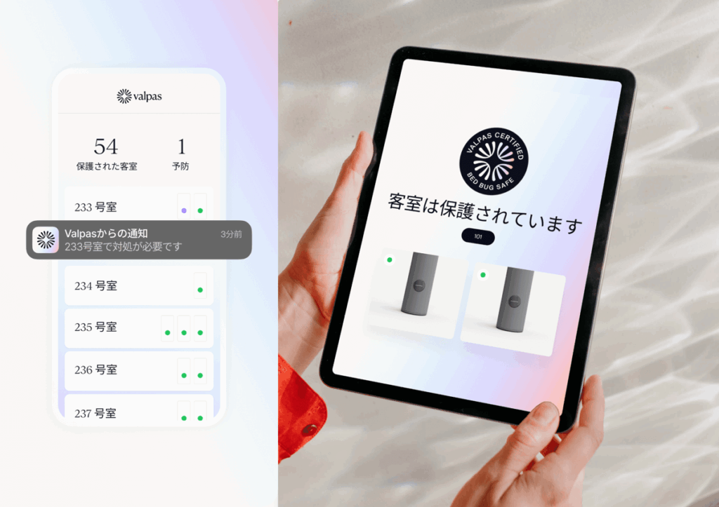 萃sui-諏訪湖ではこの度、トコジラミ対策として特許取得の捕獲装置「Valpas(バルパス)」を全客室に導入しました。