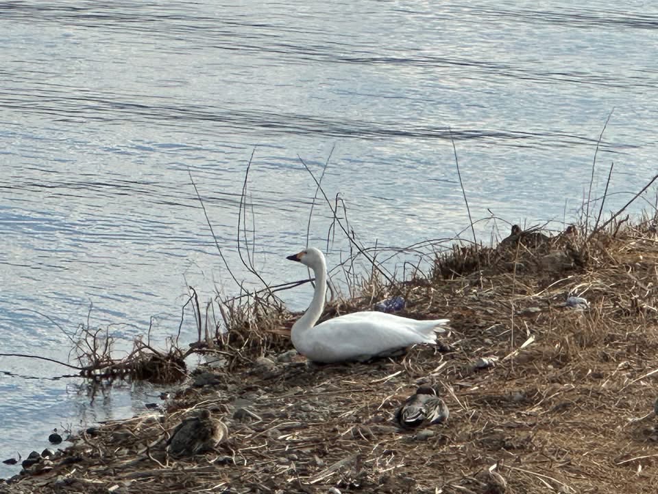 今年も12月上旬に岡谷の横川河川河口の諏訪湖付近につがいと見られる2羽のコハクチョウが飛来しました。