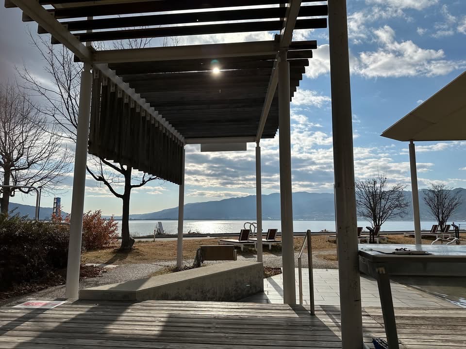 穏やかな諏訪湖の景色を眺めながらの足湯は格別で、冷えた体がポカポカとします。