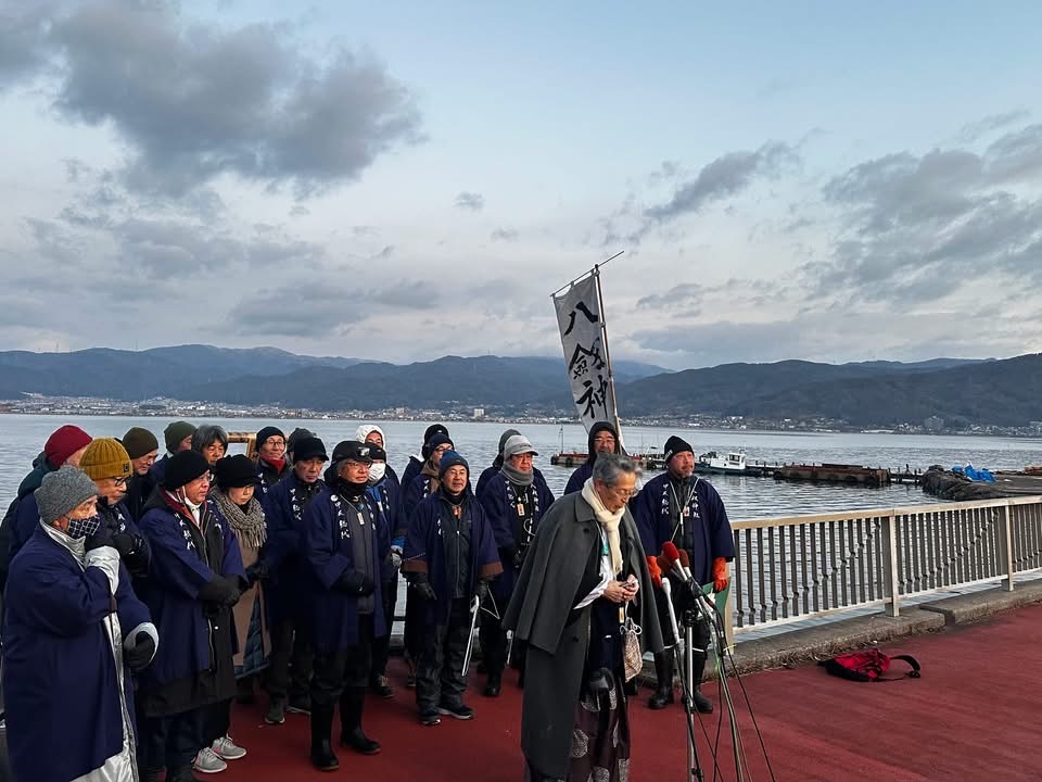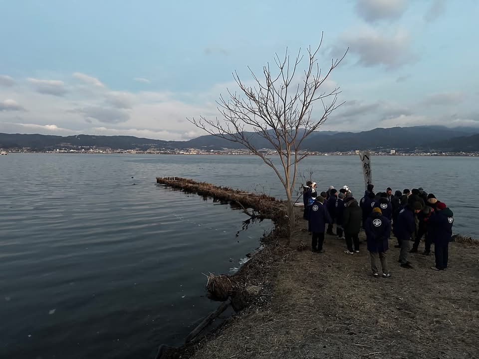 毎年小寒から立春(2月4日)あたりまで、午前6時半から舟渡川河口で、八剱神社(やつるぎ)の宮坂清宮司と氏子総代によって湖面の状態が確認されます。