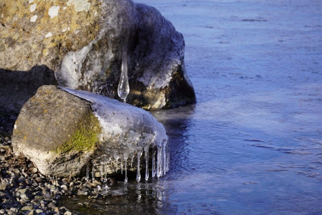 石を覆った氷も美しく自然の造形美を感じます。