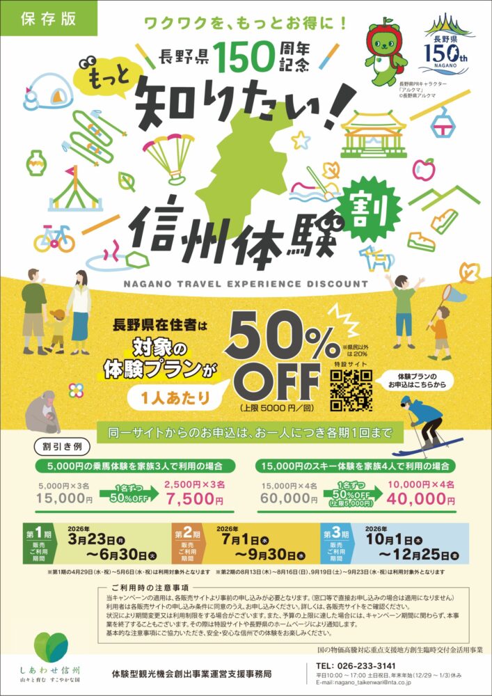 150周年を記念し、長野県内全域で「もっと知りたい!信州体験割」を開催中です。