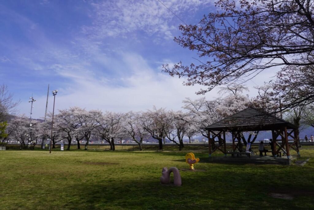 特に高島公園と赤砂崎公園付近の湖畔は満開に近く多くの方がお花見を楽しんでいらっしゃいました。