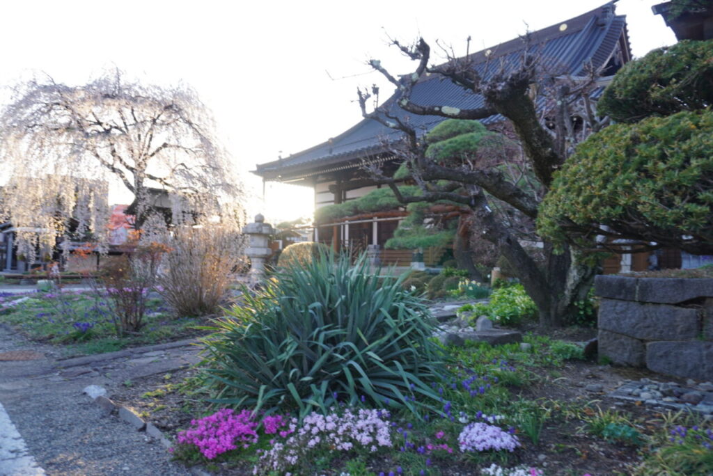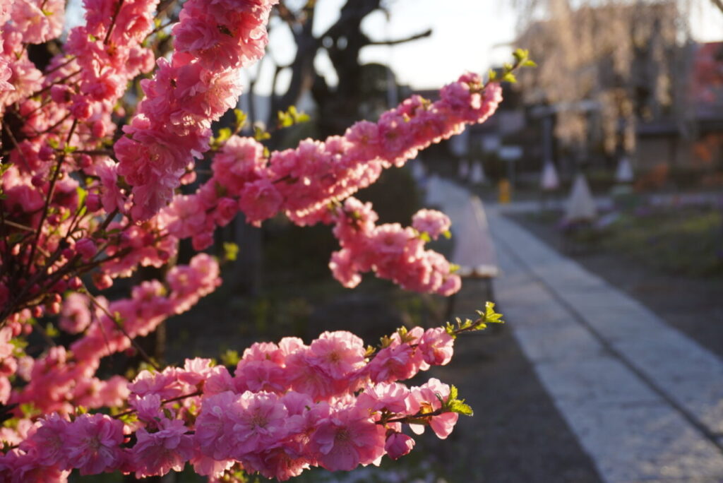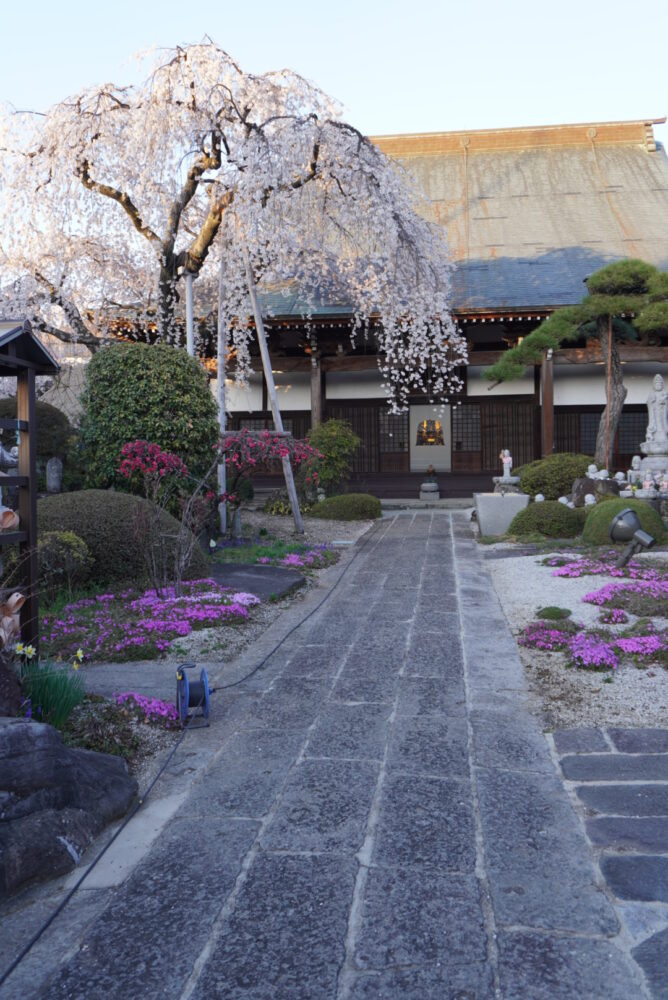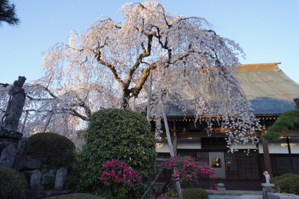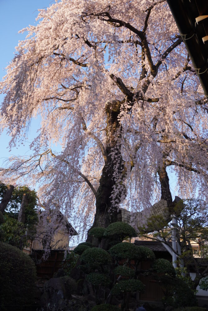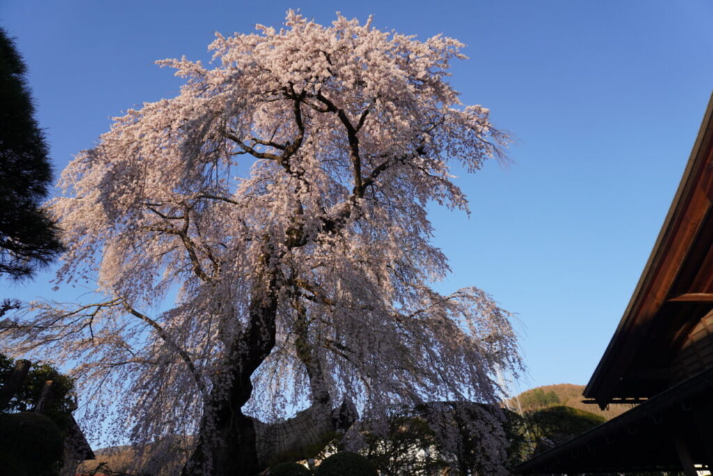 樹齢350年を超える枝垂れ桜が境内を彩ります。